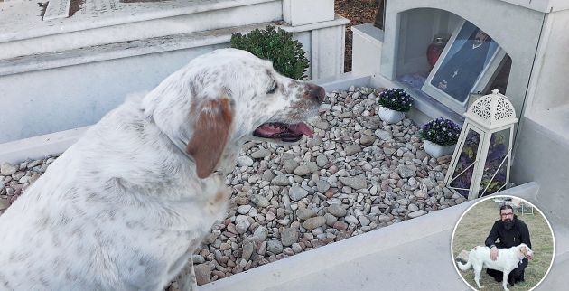 Και από τότε που εκείνος έφυγε πια από τη ζωή, πριν από τρεις μήνες, νικημένος από τον καρκίνο, η τετράποδη φίλη του δεν έχει σταματήσει να πηγαίνει στο μνήμα του και να κλαίει γοερά κοιτάζοντας τη φωτογραφία του!