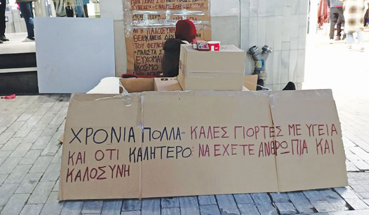«Εύχομαι ποτέ κανείς να μην αναγκαστεί να μείνει έξω στον δρόμο. Περιμένω να κλείσει το κατάστημα που είναι πίσω μου για να κοιμηθώ. Κοιμάμαι από τη μια πλευρά, γιατί από την άλλη είναι το μαγαζί που μπαίνει κόσμος και ντρέπομαι να με κοιτάνε.
