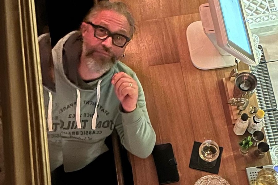 Ο ηθοποιός απολάμβανε το ποτό του σε μπαράκι στα Κύθηρα και η σύζυγός του τον απαθανάτισε με τον τετράποδο φίλος τους. Στη συνέχεια δημοσίευσε τη φωτογραφία στο Instagram γράφοντας: «Οι αγάπες μου πίνουν ένα ποτάκι».