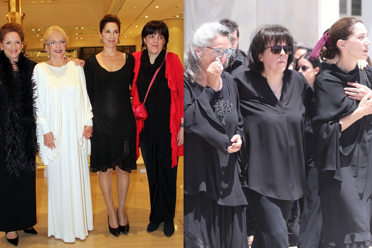 Οι κόρες της, Αριέττα, Αμαλία και Αλεξία ντυμένες στα μαύρα και κρατώντας η μία την άλλη δεν έκρυψαν τα δάκρυά τους αποχαιρετώντας τη μητέρα τους.