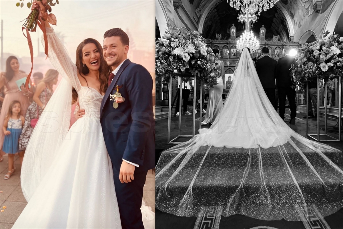 Ο γάμος έγινε στην Κύπρο και η νύφη έφτασε στην εκκλησία με άμαξα ενώ το νυφικό της ήταν μοντέρνο με τεράστια ουρά. Η ηθοποιός φόρεσε ένα αέρινο γαλάζιο φόρεμα με τα μαλλιά της κάτω με ένα ελαφρύ σπάσιμο.