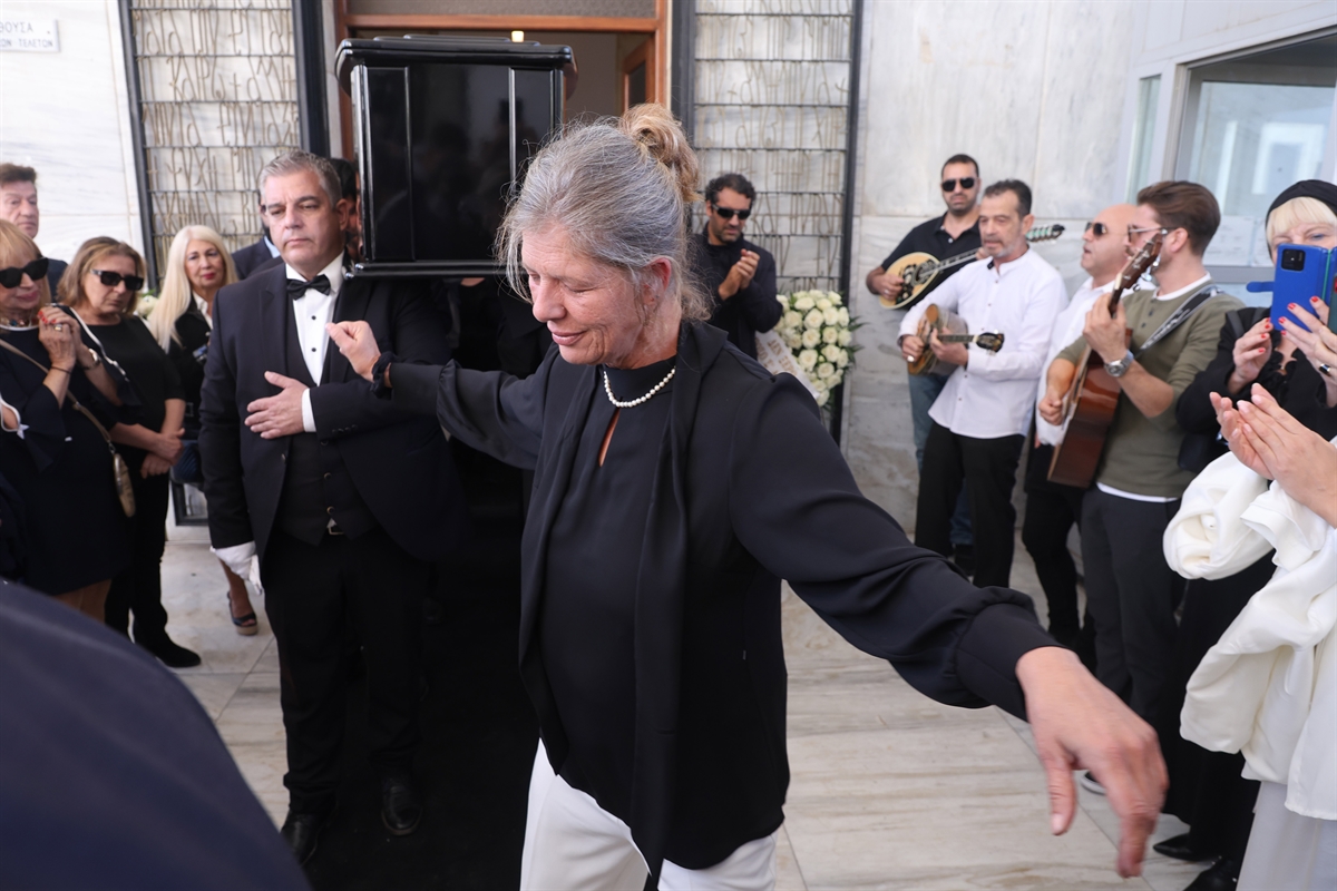Εκεί, και η Μαίρη Βιδάλη, η οποία για αρκετή ώρα κάθισε πάνω από το φέρετρο να μιλάει στον φίλο της Σπύρο Φωκά.