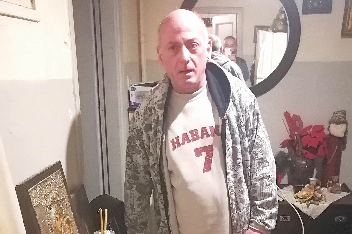 «Δουλειά ζητάω. Οχι ελεημοσύνη. Οταν δεν έχεις δουλειά, είσαι σαν ζωντανός νεκρός. Ζόμπι. Εναν χρόνο ταλαιπωρούμαι με το ισχίο και σε λίγες μέρες θα μπω στο χειρουργείο» είναι οι πρώτες κουβέντες του, θέλοντας να δικαιολογήσει τα κινητικά προβλήματα που έχει. Στους τοίχους με σελοτέιπ έχει κολλήσει παλιές φωτογραφίες από τότε που ο ίδιος μεσουρανούσε δίπλα στους Ηλιόπουλο, Βουτσά, Τσιβιλίκα, Φιλιππίδη, Σεφερλή.