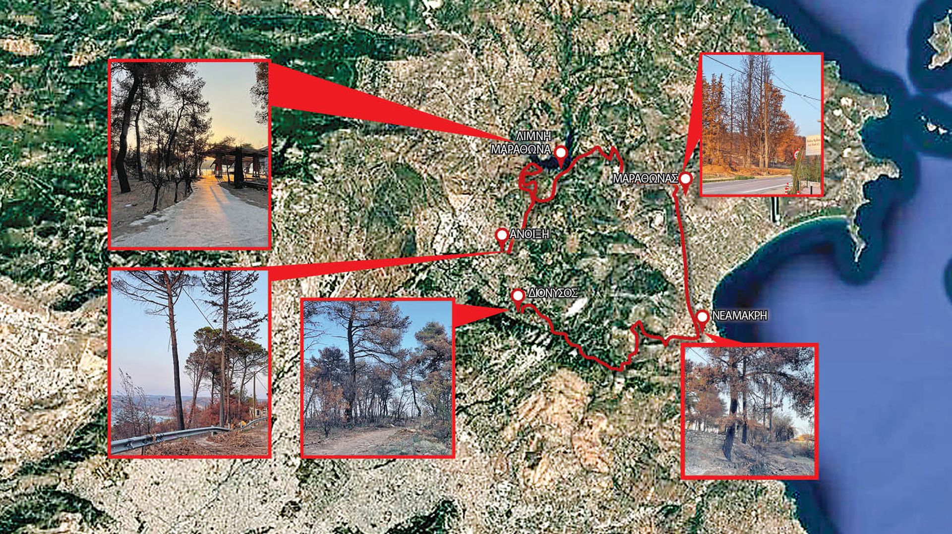 Εάν, δε, ακολουθήσει κάποιος την τεράστια κυκλική πορεία που κάναμε εμείς, η οποία ξεκινάει από τον Διόνυσο, αγκαλιάζει τον Μαραθώνα και κλείνει στα όρια της Σταμάτας, πριν από τον Αγιο Στέφανο, κάλλιστα θα διαπιστώσει ότι αυτή η φωτιά έσβησε μόνη της…