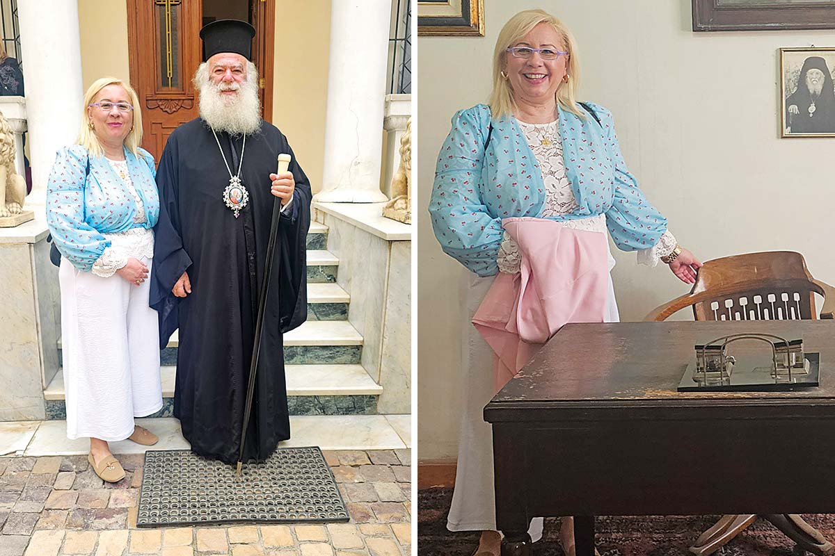 H γράφουσα με τον Πατριάρχη Αλεξανδρείας και πάσης Αφρικής Θεόδωρο Β’ μπροστά από την πατριαρχική έδρα στο Κάιρο, όπου και μας δώρισε έναν Σταυρό