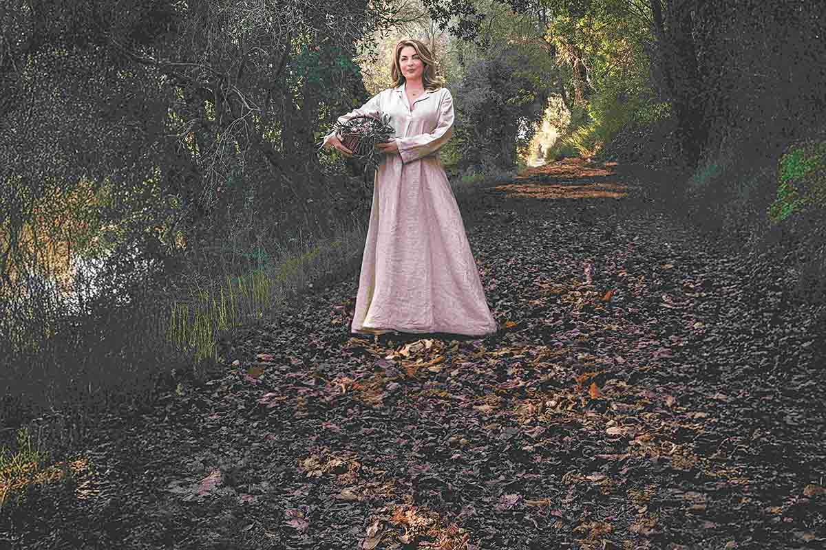 Η Αντζελα Γκερέκου περιτριγυρισμένη από ελιές