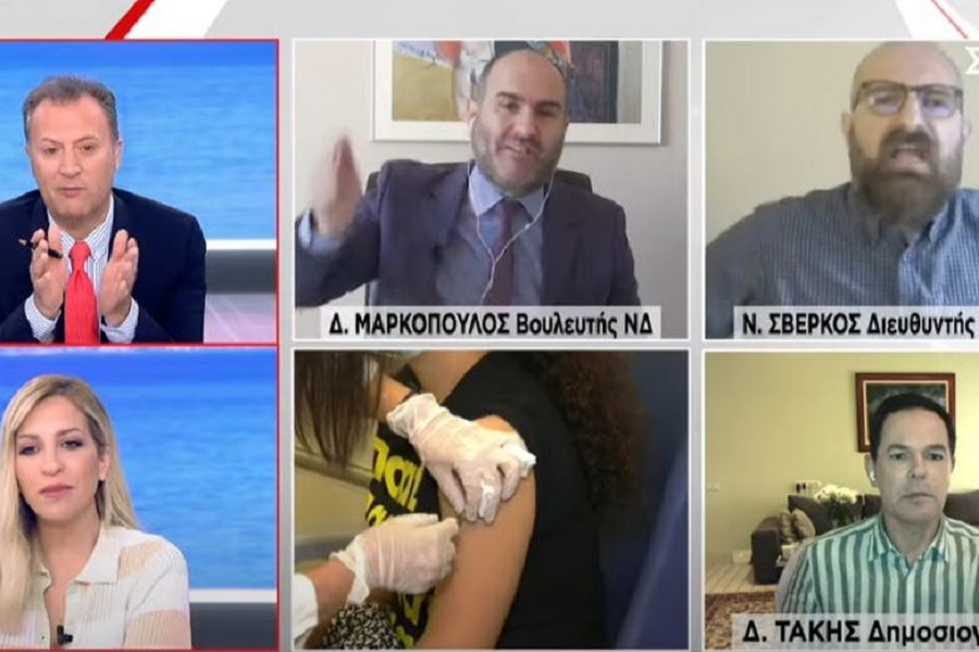 Άγριος καβγάς ξέσπασε στον αέρα της εκπομπής «Σήμερα» ανάμεσα στον Νίκο Σβέρκο και τον Δημήτρη Μαρκόπουλο. Αφορμή στάθηκε η συζήτηση για τους εμβολιασμούς και το διάγγελμα του πρωθυπουργού.