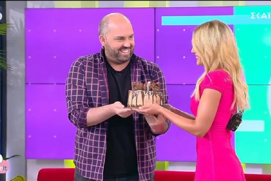 Ο Μάνος Μαγιάτης είχε τα γενέθλιά του και αφού του ευχήθηκε χρόνια πολλά κατά τη διάρκεια της εκπομπής εμφανίστηκε κρατώντας μια τούρτα.