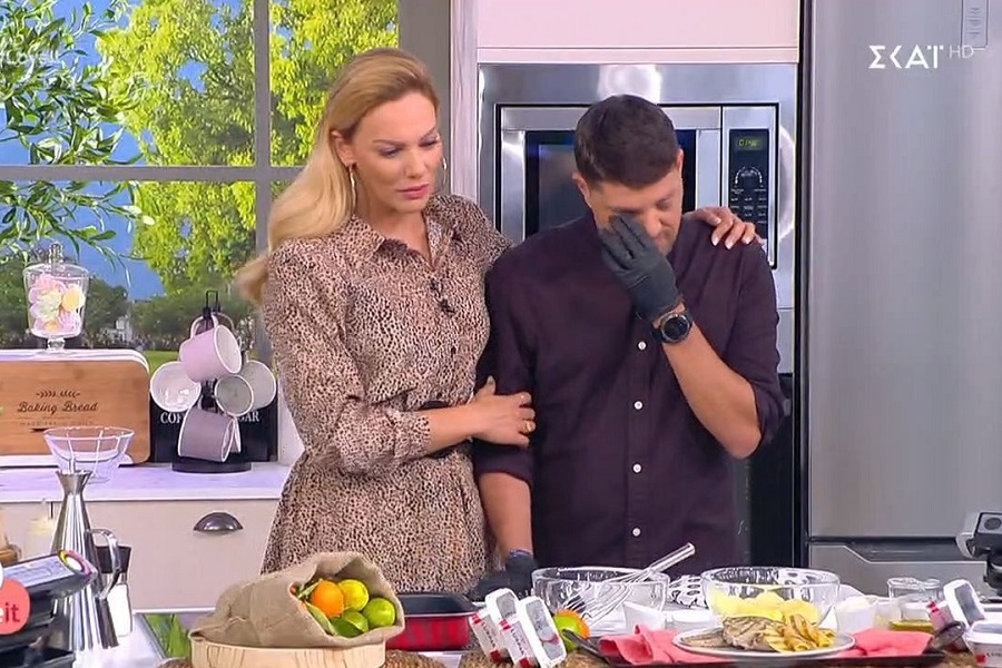 Η Ιωάννα Μαλέσκου αμήχανη στάθηκε δίπλα του λέγοντας: «Είναι επαγγελματίας, σήμερα βρίσκεται εδώ ενώ η καρδούλα του είναι αλλού για ένα τόσο σημαντικό θέμα. Εμένα δε με νοιάζει να μην κάνουμε τη συνταγή και το παίρνω όλο πάνω μου».