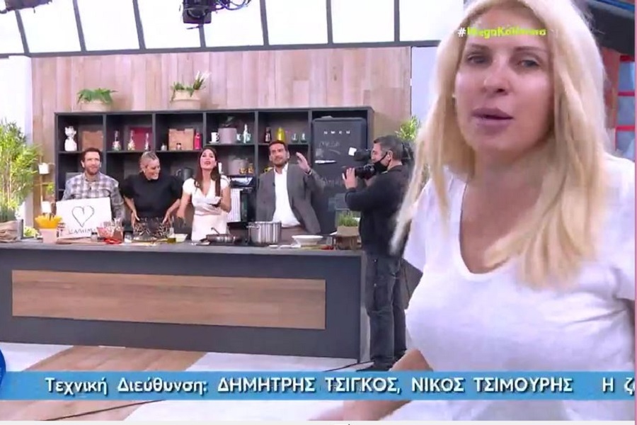 Αμακιγιάριστη η Μενεγάκη εισέβαλλε στο πλατό της Μελέτη για να πάρει φαγητό (video)