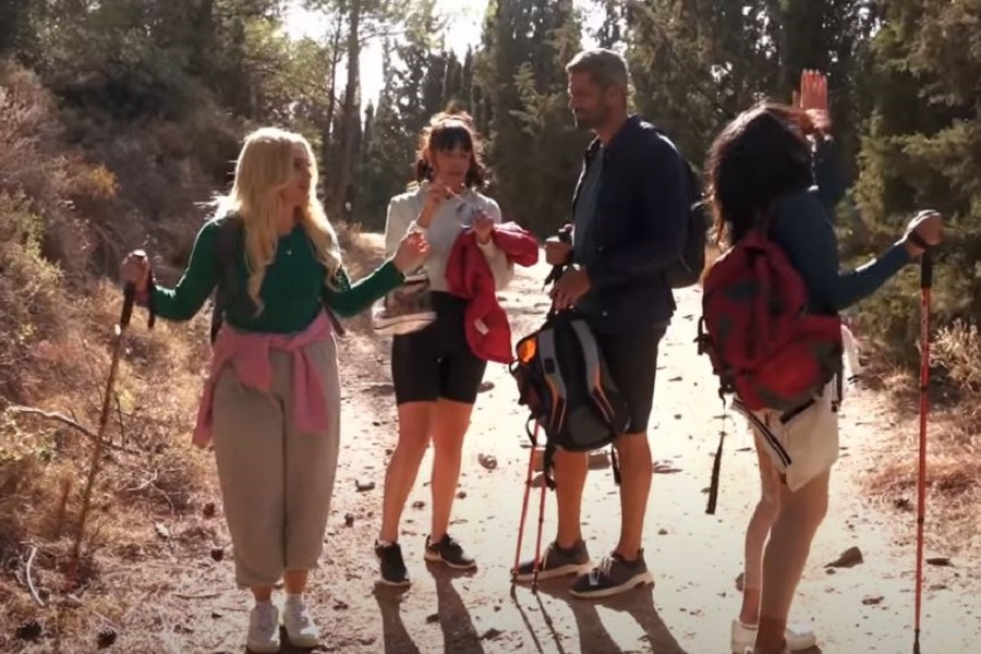 Το αποψινό ραντεβού του Αλέξη με τη Γιώτα, την Έλενα, και τη Μαρία περιλαμβάνει πεζοπορία και ποδηλασία στη φύση. Η Έλενα μπερδεύει τη χλωρίδα και την πανίδα, αλλά και την πεζοπορία με το σκι. Και ενώ η Μαρία ανοίγει το μεγάλο τσαντάκι για να βγάλει το μικρό τσαντάκι με τα καλλυντικά της που δεν αποχωρίζεται ποτέ, η Γιώτα αναρωτιέται πως η Μαρία δεν έφερε βαλίτσα, ενώ η Έλενα… απαγγέλει ποίηση. Όταν πρέπει να πάρουν τα ποδήλατά τους όμως, η Έλενα ζητά βοηθητικές ρόδες…