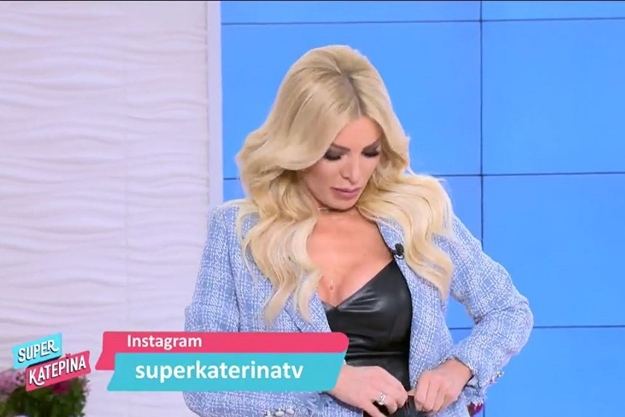 Η Κατερίνα Καινούργιου κατά τη διάρκεια της εκπομπής όταν σηκώθηκε από τη καρέκλα της, της άνοιξε το παντελόνι και το πρόλαβε στο παραένα να το κλείσει.