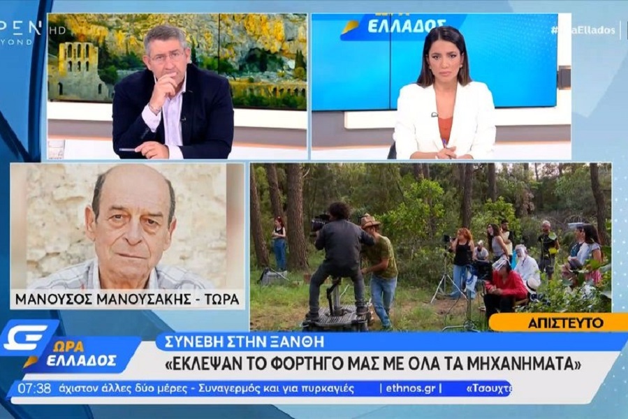 «Στις 03:30 το πρωί εκλάπη το μεγάλο φορτηγό μας με τα μηχανήματα όλα της παραγωγής. Είναι πολύ σοβαρό, για να μην πω καταστροφικό… Είναι πολύ μεγάλο πλήγμα», ανέφερε ο Μανούσος Μανουσάκης στην εκπομπή «Ώρα Ελλάδος».