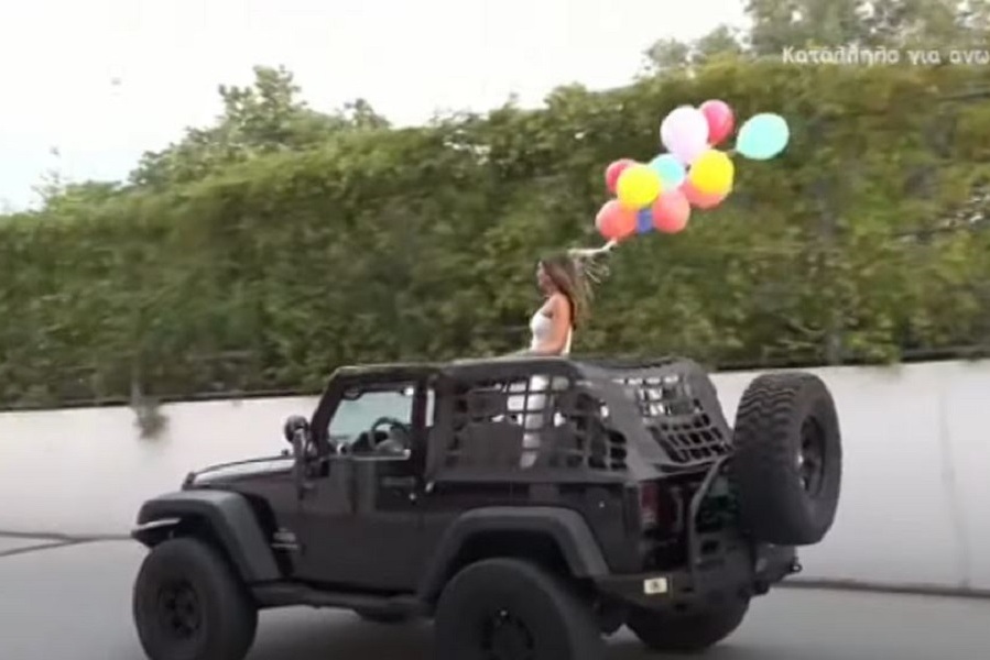 Η παρουσιάστρια ντυμένη στα λευκά έκανε γκράντε έναρξη καθώς εμφανίστηκε σε τζιπ ανοιχτό να κρατάει μπαλόνια και στη συνέχεια να μπαίνει στο πλατό χορεύοντας και τραγουδώντας.