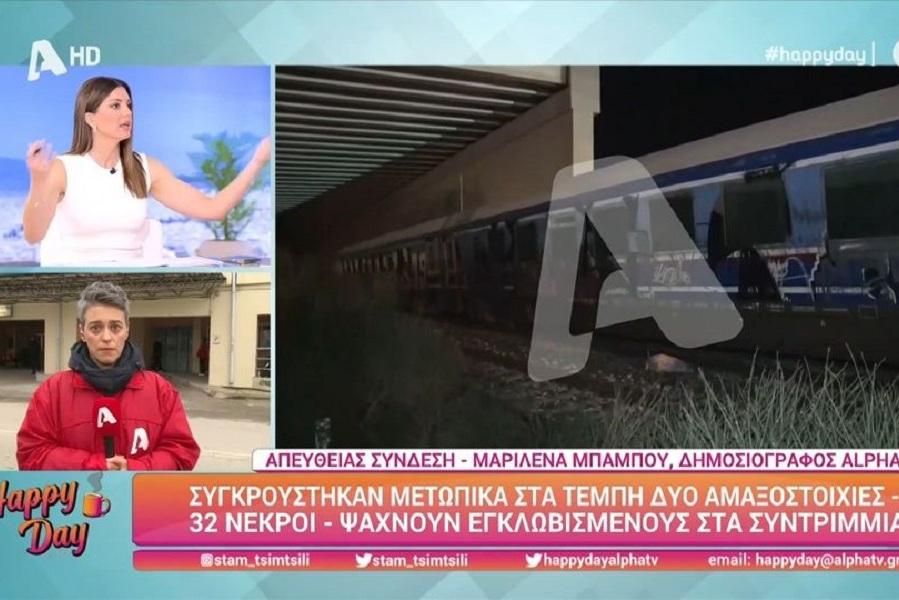 Η Σταματίνα Τσιμτσιλή ξέσπασε κατά τη διάρκεια της εκπομπής «Happy Day» βλέποντας τις τραγικές εικόνες από το πολύνεκρο δυστύχημα στα Τέμπη μετά τη σύγκρουση τρένων.