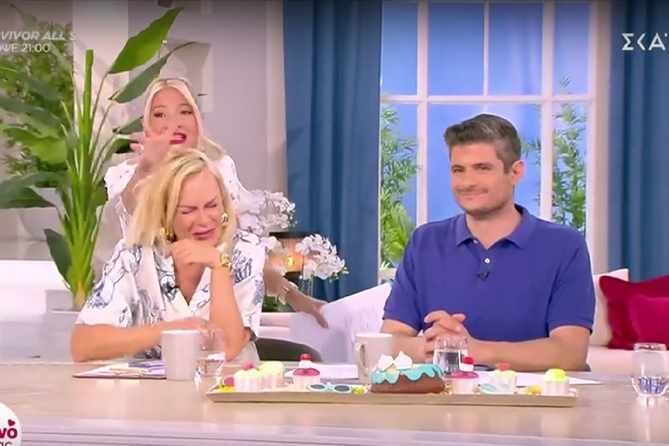 Μετά το μήνυμα που έλαβε από τον Δημήτρη Μοθωναίο περπατούσε στο στούντιο και όπως κούνησε τα χέρια της χτύπησε τη συνεργάτιδά της χωρίς αν το θέλει. Έτρεξε να δει πώς είναι η Έλενα Χριστοπούλου ζητώντας της ταυτόχρονα συγγνώμη.