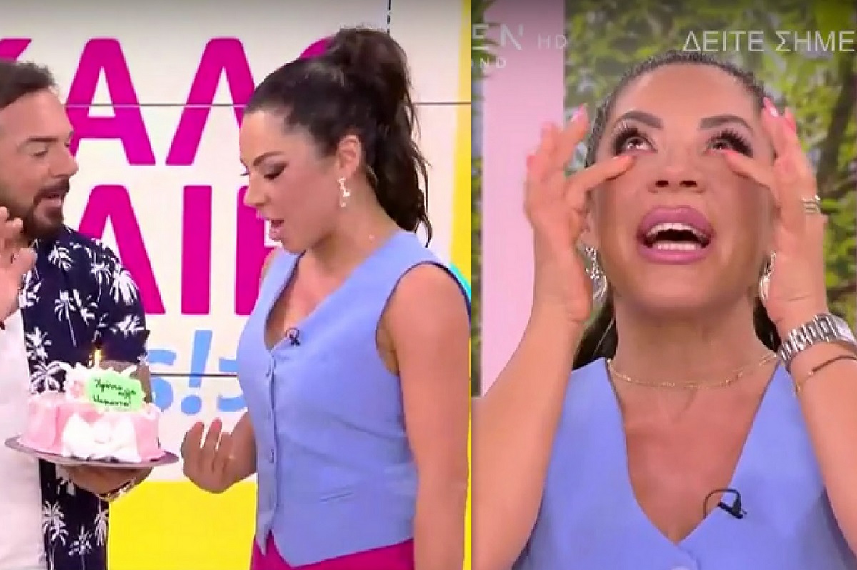 Αφού καλημέρισε τους τηλεθεατές μπήκαν στο πλατό με την τούρτα η Φελίσια Τσαλαπάτη και ο Τριαντάφυλλος. «Τι καλοί που είστε; Σας ευχαριστώ πάρα πολύ», είπε η τραγουδίστρια.