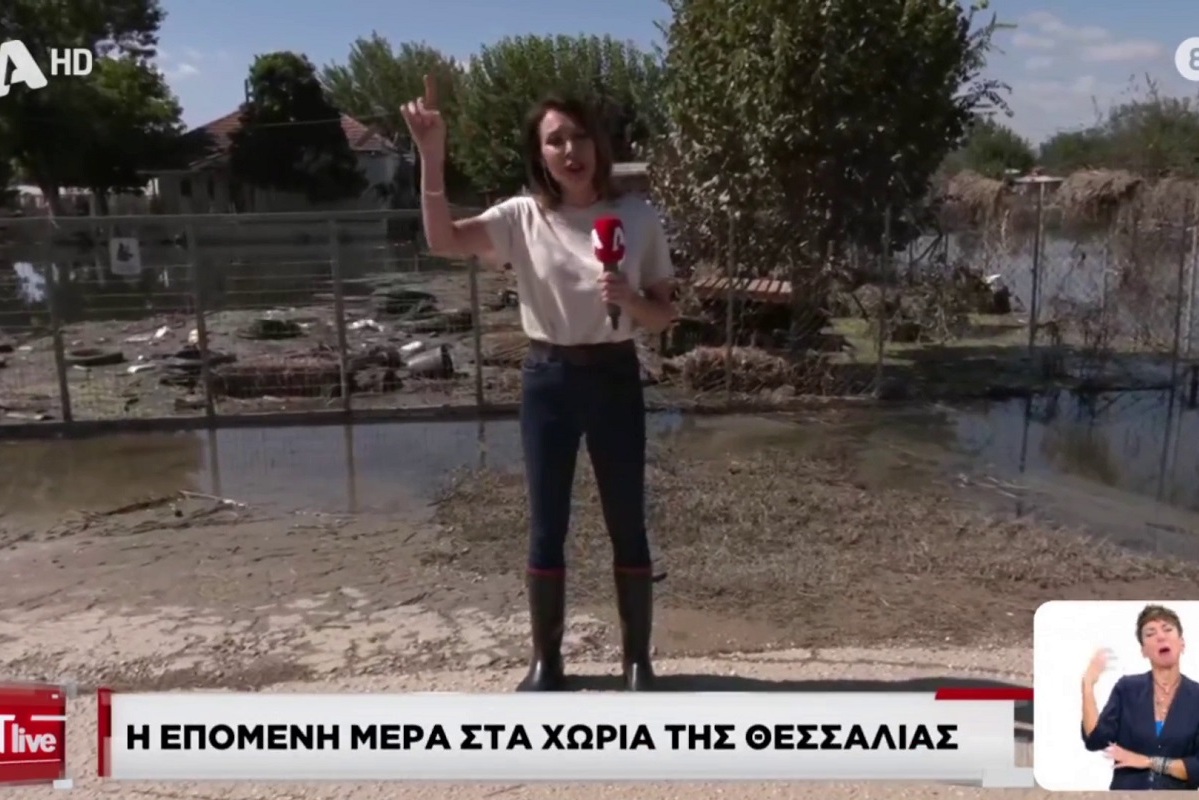 Η παρουσιάστρια φόρεσε γαλότσες και περπάτησε τα πλημμυρισμένα χωριά της περιοχής και κατέγραψε όσα συμβαίνουν στην περιοχή. «Καλησπέρα κυρίες και κύριοι από τη πληγωμένη καρδιά της Ελλάδας. Καλησπέρα σας από τη Θεσσαλία.