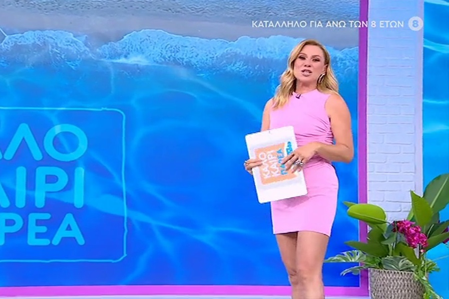 Η παρουσιάστρια φορώντας ένα μίνι ροζ φόρεμα καλημέρισε τους τηλεθεατές της. «Θέλω να σας πω δυο τρία πράγματα πριν απογειωθεί στον αέρα αυτή η εκπομπή και περάσουμε το καλοκαίρι μας παρέα.