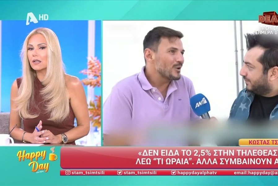 Η παρέα του «Happy Day» το πρωί της Δευτέρας σχολίασε τις δηλώσεις του Κώστα Τσουρού σχετικά με τα νούμερα τηλεθέασης. Ο παρουσιαστής φαινόταν ενοχλημένος για τη συζήτηση περί τηλεθέαση.