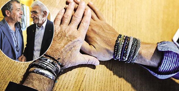 ❱❱ Η αναμέτρηση του Σταύρου Θεοδωράκη και του Γιάννη Μπουτάρη για το ποιος φορά περισσότερα! Σκεφτείτε πόσα βραχιόλια θα φορέσει από τη χαρά του, εάν εκλεγεί πρόεδρος του νέου φορέα της Κεντροαριστεράς, ο Σταύρος Θεοδωράκης.