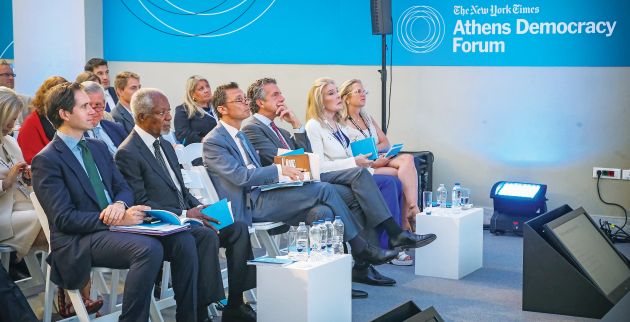 Ο πρώην γ.γ. του ΟΗΕ Κόφι Ανάν, η κόρη του Ρόμπερτ Κένεντι, Κέρι (η ομοιότητα με τον πατέρα της είναι εκπληκτική), και η εγγονή του αείμνηστου γερουσιαστή, Μαράια, ήρθαν στη χώρα μας ως προσκεκλημένοι του New York Times Athens Democracy Forum.