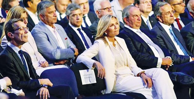 Η Μαρέβα διάλεξε κοστούμι από την προσωπική συλλογή της Zeus + Dione. Λευκό ταγέρ φόρεσαν και η αδελφή του Κυριάκου, Ντόρα Μπακογιάννη, όπως και η βουλευτής Καστοριάς Μαρία Αντωνίου.