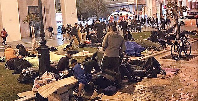 ❱❱ Σε καταυλισμό μεταναστών έχει μετατραπεί τις τελευταίες μέρες η πλατεία Αριστοτέλους της Θεσσαλονίκης, που πλέον δεν θυμίζει σε τίποτα το πιο εμβληματικό σημείο του κέντρου της συμπρωτεύουσας, με τους περαστικούς να βγάζουν φωτογραφίες και να βιντεοσκοπούν την απαράδεκτη εικόνα της.Μετανάστες έχουν στήσει σλίπινγκ μπαγκ στα παρτέρια και στο γκαζόν, όπου διανυκτερεύουν, ενώ και κατά τη διάρκεια της ημέρας πολλοί είναι αυτοί που ξαπλώνουν και απολαμβάνουν τον μεσημεριανό τους ύπνο κάτω από τη λιακάδα!