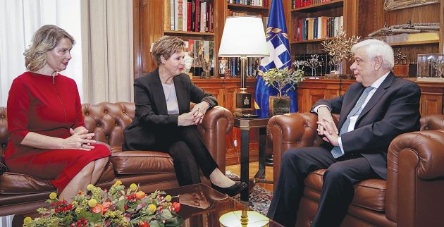Ο λόγος για τις δύο κυρίες του υπουργείου Προστασίας του Πολίτη Ολγα Γεροβασίλη και Κατερίνα Παπακώστα, τις οποίες συνάντησε χθες ο Προκόπης Παυλόπουλος. Από τις έξι το πρωί της ίδιας μέρας μάλιστα είχε μπει για πρώτη φορά σε εφαρμογή το σχέδιο της πεζής αστυνόμευσης αλά ΣΥΡΙΖΑ, κι ο Πρόεδρος έπρεπε να ενημερωθεί σχετικώς.