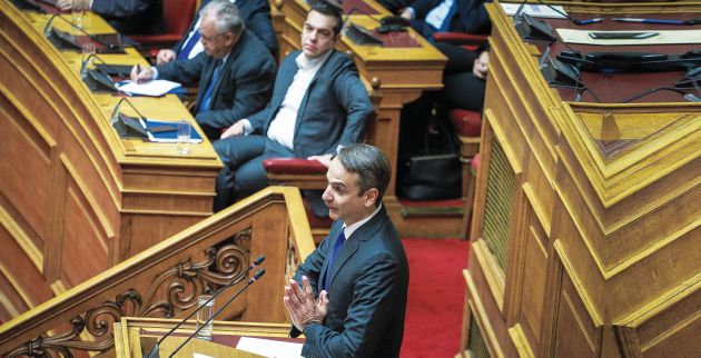 Στο μεταξύ, «τελευταία πράξη μιας παράστασης» και «άθλιο θέατρο» χαρακτήρισε ο Κυριάκος Μητσοτάκης την πρόταση εμπιστοσύνης που ζήτησε ο πρωθυπουργός και από το βήμα της Βουλής επικαλέστηκε τη δήλωση του Αλέξη Τσίπρα το 2014, ότι «ψήφο εμπιστοσύνης δεν δίνουν οι κυβερνήσεις στον εαυτό τους», αλλά «τη δίνει ο λαός, και τη δίνει ανοιχτά και καθαρά μέσα από εκλογές», λέγοντας χαρακτηριστικά: «Αυτό ζητώ, χωρίς ούτε μια λέξη παραπάνω από αυτά που έλεγε ο Αλέξης Τσίπρας το 2014. Συμφωνώ μαζί σας, κ. Τσίπρα. Εκλογές εδώ και τώρα! Ιδού η Ρόδος, ιδού και το πήδημα». Ο πρόεδρος της Ν.Δ. χαρακτήρισε εκ νέου την κυβέρνηση «κουρελού», σημειώνοντας ότι «είναι ο νέος όρος που εξάγει ο κ. Τσίπρας, μετά την ”κωλοτούμπα”».