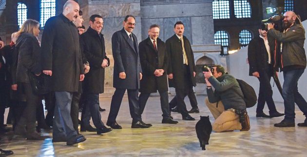 ❱❱ Τα… απρόοπτα κατά την επίσκεψη Τσίπρα στην Αγια-Σοφιά και ο Ελληνας μουσικός που έκλεψε την παράσταση στο δείπνοΥπό δρακόντεια μέτρα ασφαλείας έφτασε το πρωθυπουργικό ζεύγος στον εμβληματικό Ναό της Αγίας Σοφίας, όπου περίμεναν δεκάδες τηλεοπτικά συνεργεία και μια… γοητευτική ξεναγός, η οποία μαγνήτισε τα βλέμματα! Ομως, την παράσταση έκλεψε μια μαύρη γάτα, που «έκοβε βόλτες» μέσα στο μνημείο-σύμβολο της Ορθοδοξίας!