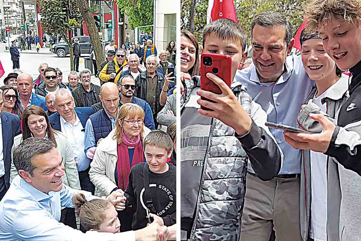 Τσούρμο από εφήβους, που ψηφίζουν και μη, τον πλησίασαν πριν και μετά την ομιλία του, στην πλατεία της πόλης, ζητώντας του να φωτογραφηθούν μαζί του. Τα παιδιά χάρηκαν ιδιαίτερα όταν είδαν τον πρώην πρωθυπουργό να ακούει τις παρακλήσεις τους για φωτογραφία και να στέκεται πλάι τους. Ο Αλέξης Τσίπρας δεν χάλασε κανένα χατίρι! Ακόμη και γονείς τον προέτρεπαν για μια selfie με τα παιδιά τους.
