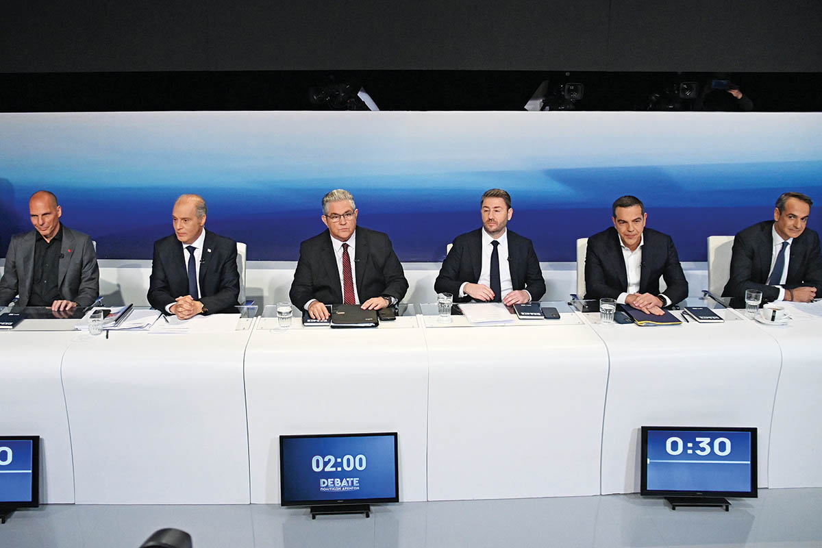 Λίγο προτού καθίσουν στο πάνελ, πήραν φωτιά τα πινέλα και οι πούδρες από τις μακιγιέζ, για να μη γυαλίζουν, οι πολιτικοί αρχηγοί ρωτούσαν ποια είναι η κάμερα την οποία θα κοιτάζουν, ενώ χαριεντίστηκαν με τους σκηνοθέτες για τις… ωραίες τους γωνίες.