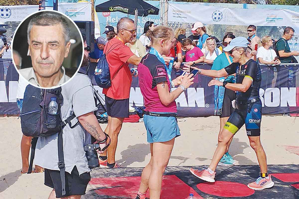 Τώρα, στο διεθνές πρωτάθλημα Half Iron τριάθλου, πήρε την τρίτη θέση στην Ευρώπη και την πρώτη στην Ελλάδα και στην ηλικία της. Τερματίζοντας έκλαιγα, γιατί είναι πολύ γενναία γυναίκα» λέει στη στήλη μιλώντας για την παντοτινή αγαπημένη και σύντροφό του στη ζωή ο περιφερειάρχης Θεσσαλίας Δημήτρης Κουρέτας.