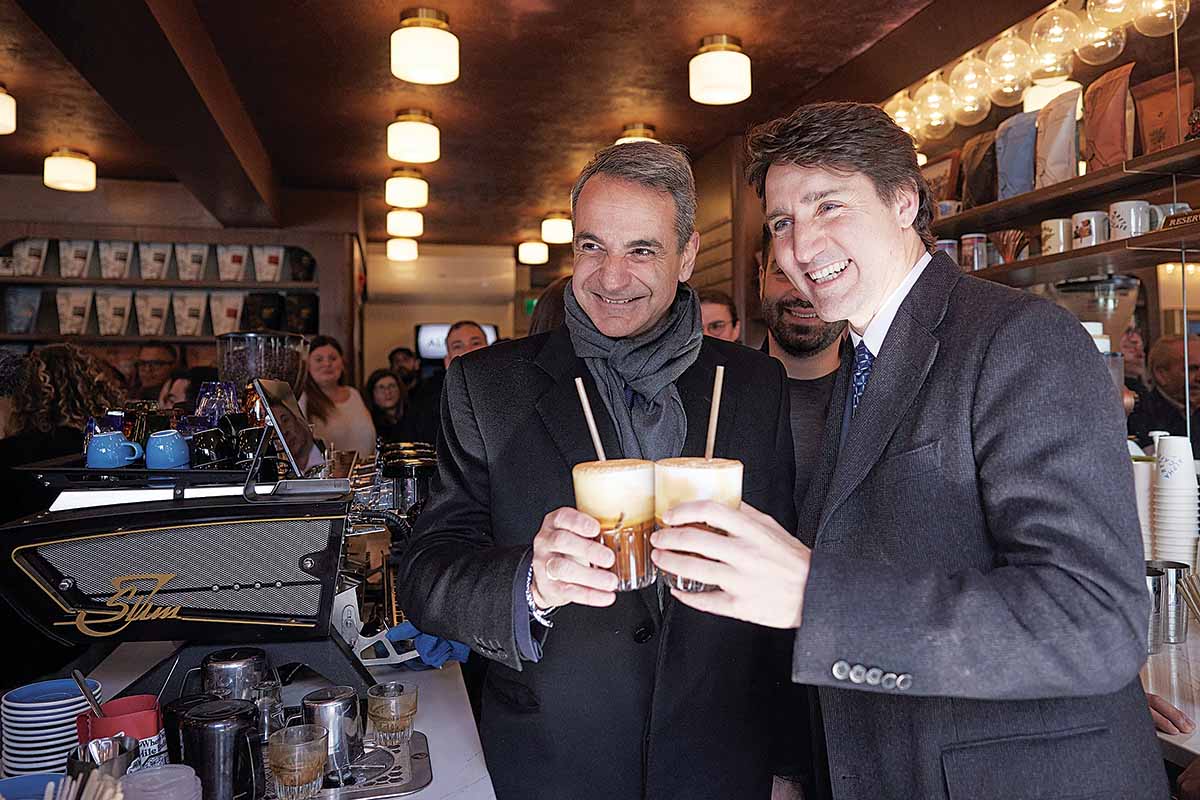 Ταξιδάκι στον Καναδά για τον Μητσοτάκη, ο οποίος «μύησε» τον Τζάστιν Τριντό στον… ελληνικό καφέ πριν από την παρέλαση