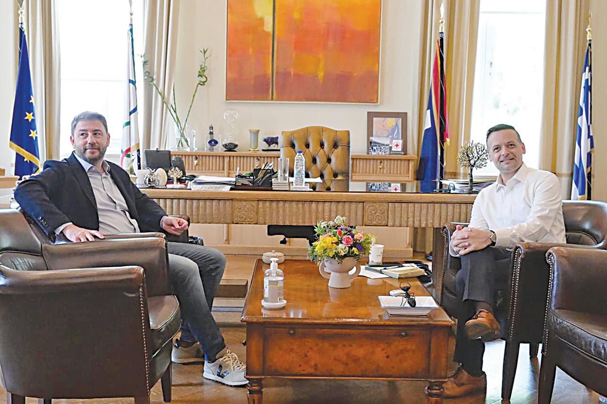 «Ανακωχή» για τον πρόεδρο του ΠΑΣΟΚ Νίκο Ανδρουλάκη και τον δήμαρχο Αθηναίων Χάρη Δούκα, που έκαναν το πρώτο και σημαντικό βήμα προς αποκατάσταση των σχέσεών τους, οι οποίες, όπως λεγόταν από το περιβάλλον τους, ήταν «συννεφιασμένες»!