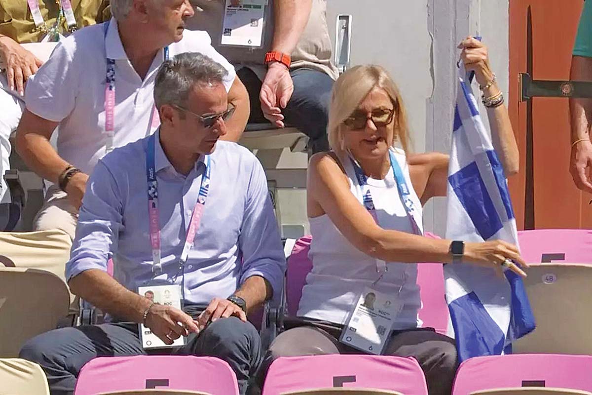 Η σύντροφος του γιου τους, σκεπτόμενη ότι και τα πεθερικά της την παρακολουθούν, έκανε επίδειξη δύναμης κόντρα στην Ντάνκα Κόβινιτς, την οποία νίκησε με 2-0 σετ. Ο πρωθυπουργός έφυγε χαρούμενος από το Παρίσι, καμαρώνοντας τη Μαρία Σάκκαρη.