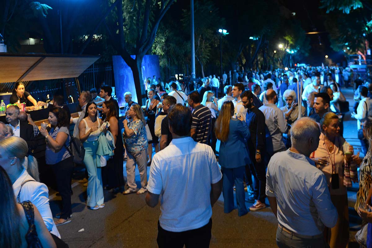 Ο κόσμος έκανε την εμφάνισή του δειλά δειλά λίγο μετά τις έξι το απόγευμα της Παρασκευής , αφού ο χαιρετισμός του Κυριάκου Μητσοτάκη είχε προγραμματιστεί για λίγο μετά τις οκτώ, που ο δρόμος γέμισε για την ομιλία του, αλλά και άδειασε μετά την αποχώρησή του, όταν επιβιβάστηκε στο αυτοκίνητο όπου τον περίμενε η σύζυγός του Μαρέβα Γκραμπόφσκι.