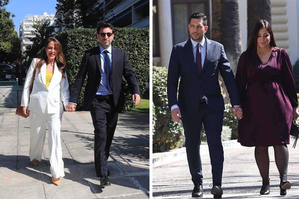 Ο αναπληρωτής υπουργός Υποδομών και Μεταφορών Κωνσταντίνος Κυρανάκης κρατούσε από το χέρι την εγκυμονούσα στο δεύτερο παιδί τους σύζυγό του Ελένη Αθερινού. Με τη σύζυγο και τη μία από τις δύο κόρες του βρέθηκε στην τελετή ορκωμοσίας της Βουλής ο Λάζαρος Τσαβδαρίδης, νέος υφυπουργός Ανάπτυξης. Ο νέος υφυπουργός Παιδείας Νίκος Παπαϊωάννου με τη σύζυγό του και ο υφυπουργός Κλιματικής Κρίσης Κώστας Κατσαφάδος επίσης με τη γυναίκα του, Νόρα Βασ. Μιχαλολιάκου, και την κόρη του παρέστησαν στην τελετή.