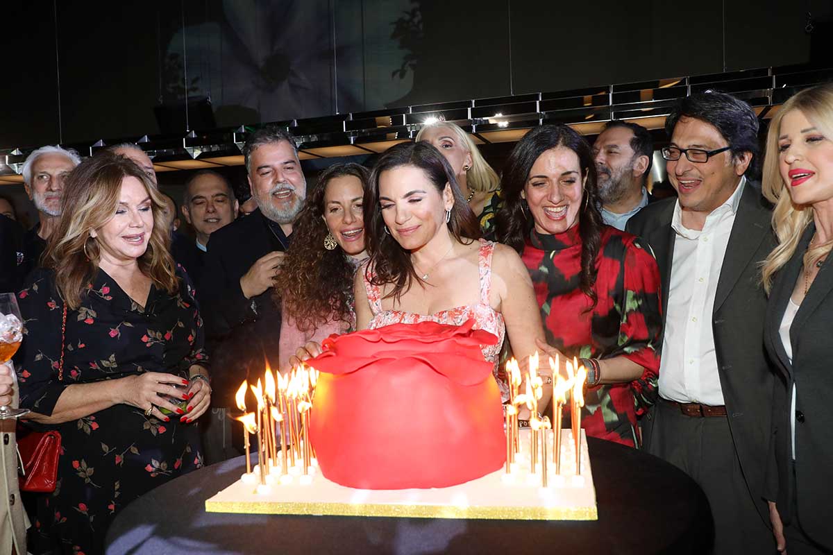 Με μια κατακόκκινη τούρτα σε σχήμα τριαντάφυλλου και γύρω γύρω τα πενήντα κεράκια γιόρτασε η Όλγα Κεφαλογιάννη τα γενέθλιά της στο surprise party που οργάνωσαν οι δύο αδελφές της, Δανάη και Χριστίνα, προχθές το βράδυ, στην Αίγλη του Ζαππείου.