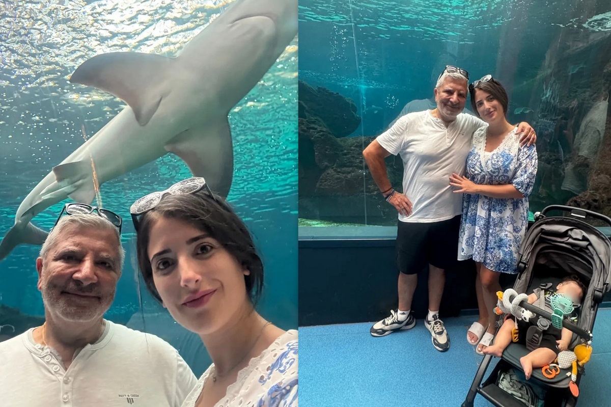 Κάνουν τις διακοπές τους στην Κρήτη, έχοντας κοντά τους τον γιο τους τον Νικόλα, τον οποίο πήγαν εκδρομή στο ενυδρείο της Κρήτης για να δει τα τεράστια ψάρια.