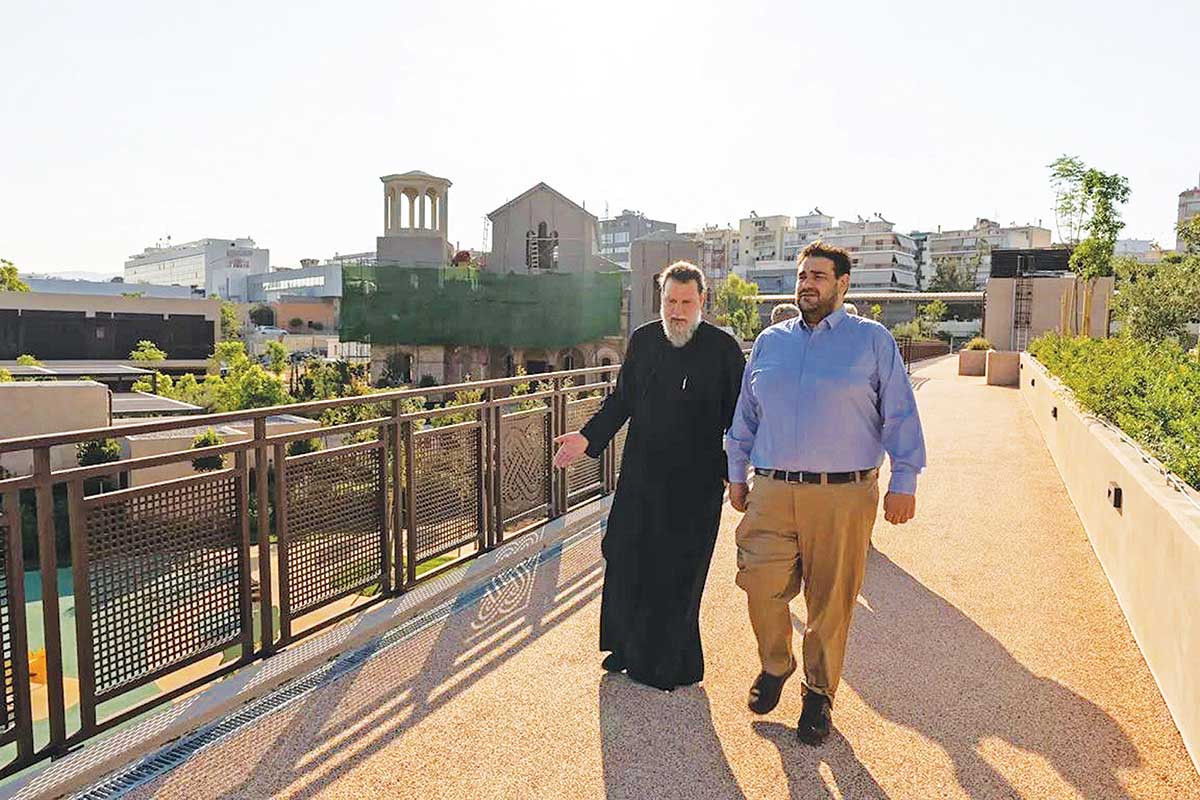 Ο σεβασμιότατος μητροπολίτης Νέας Ιωνίας κ. Γαβριήλ τον υποδέχτηκε με εγκαρδιότητα και τον συνόδευσε σε αναλυτική ξενάγηση στους χώρους του Κέντρου, προσφέροντάς του μια πλήρη εικόνα της μέχρι τώρα προόδου των εργασιών. Κατά τη διάρκεια της επίσκεψης ο σεβασμιότατος παρουσίασε τον πολυσχιδή χαρακτήρα του Ιωνικού Κέντρου, το οποίο αναμένεται για να λειτουργήσει ως ένας ζωντανός κόμβος πολιτισμού, εκπαίδευσης και κοινωνικής προσφοράς. Ιδιαίτερη έμφαση δόθηκε στην αποστολή του Κέντρου για την ανάδειξη της μικρασιατικής πολιτιστικής κληρονομιάς και τη διατήρηση της ιστορικής μνήμης του προσφυγικού Ελληνισμού – στοιχείο βαθιά ριζωμένο στην ιστορία και την ταυτότητα της περιοχής.