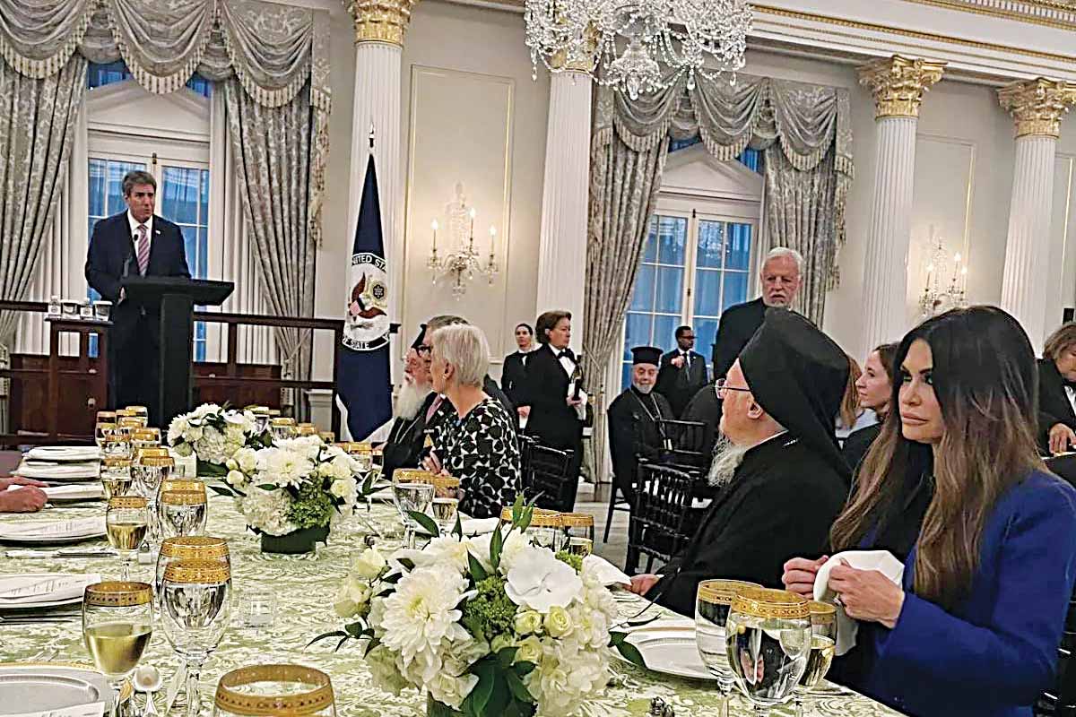 Ο Αμερικανός αναπληρωτής υπουργός Εξωτερικών Μάικλ Ρήγας παρέθεσε επίσημο δείπνο προς τιμήν του Οικουμενικού Πατριάρχη Βαρθολομαίου που βρίσκεται σε ταξίδι στις ΗΠΑ, και φυσικά δεν έλειψε η Κίμπερλι, που έχει ήδη φτιάξει το δίκτυό της, πριν ακόμη έρθει στην Αθήνα.