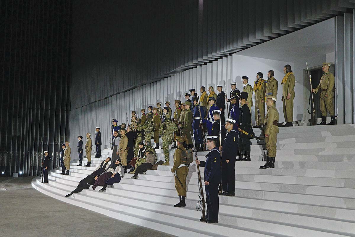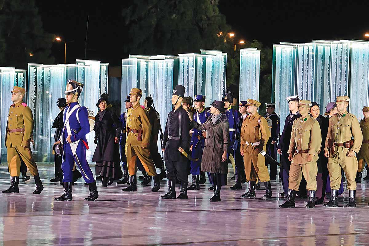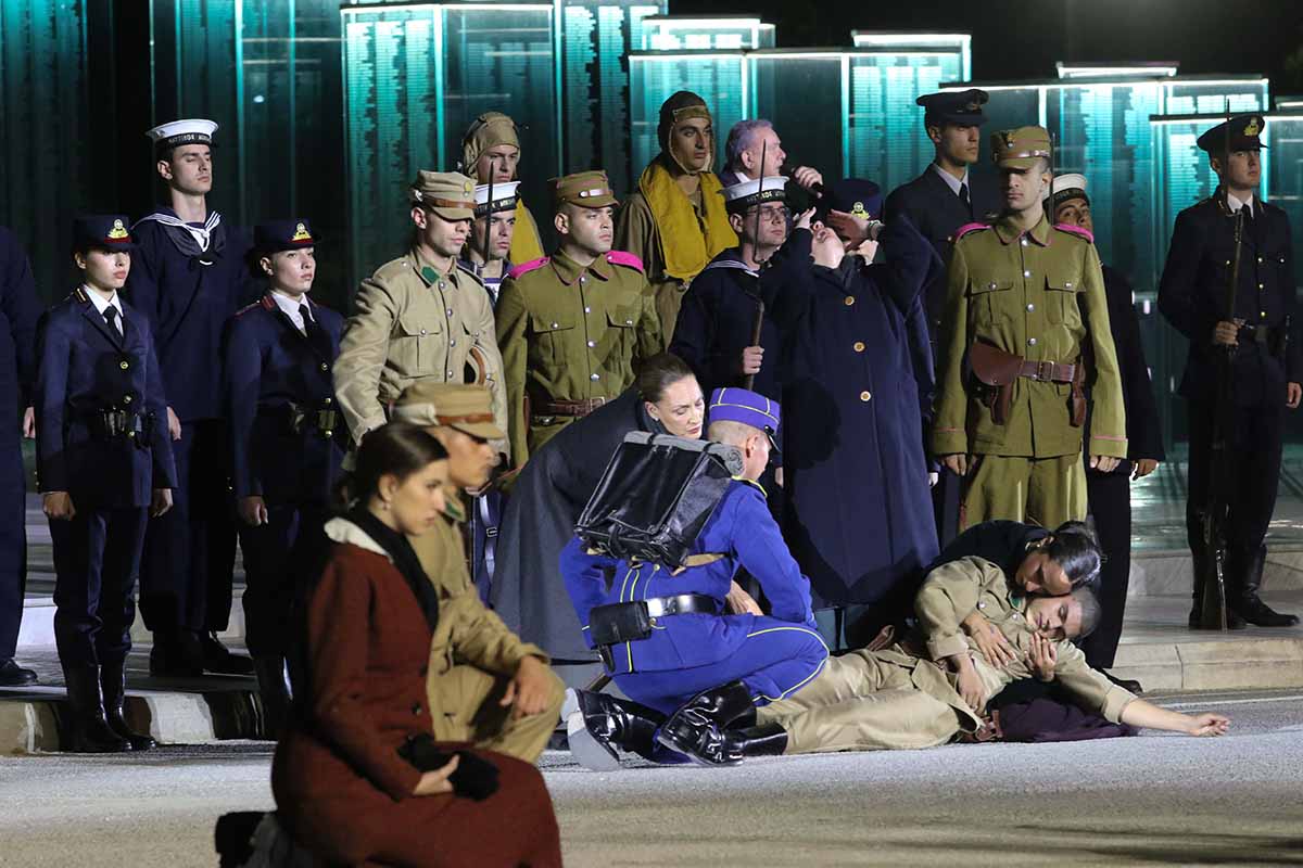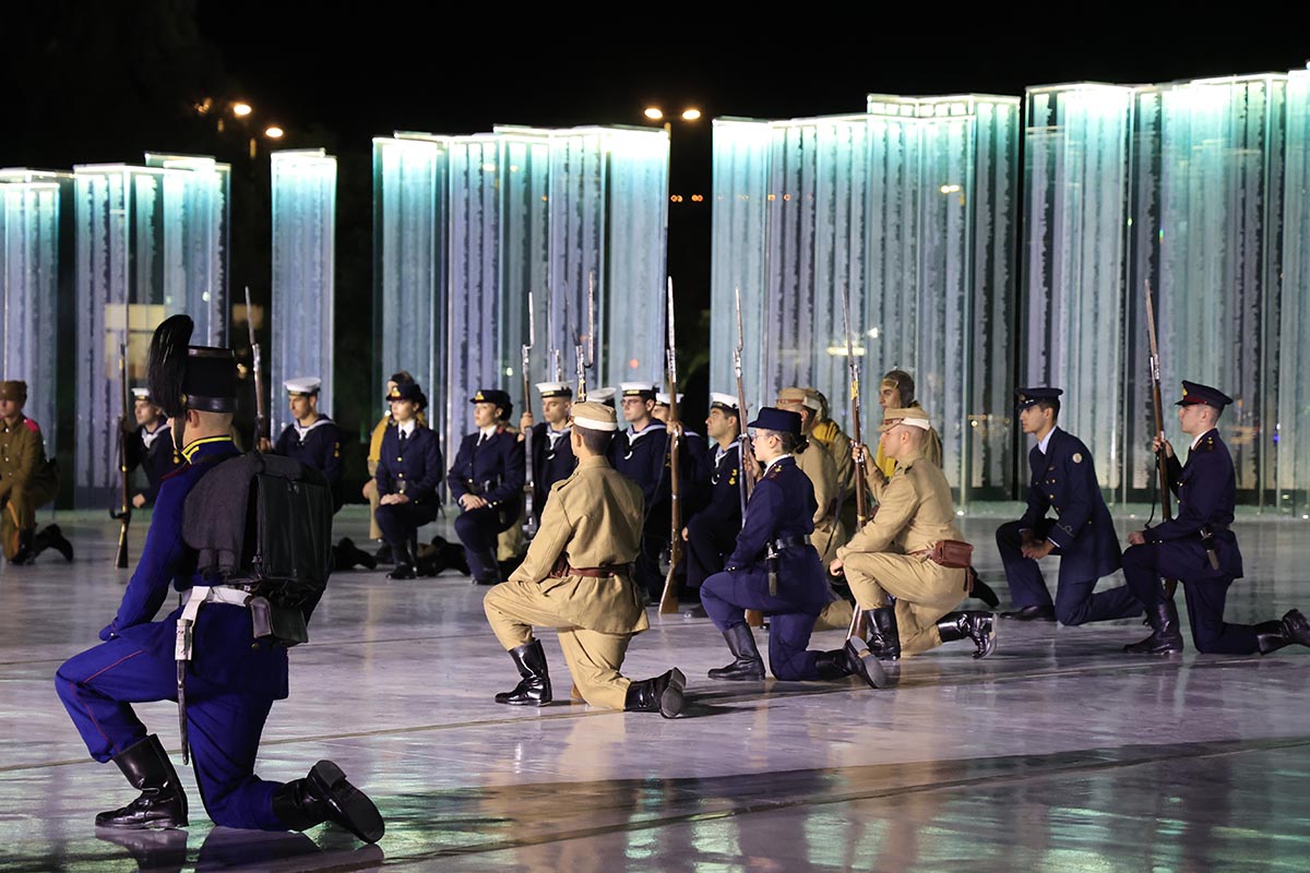 Παρά τη μεγάλη ατυχία, οι πρωταγωνιστές των δρώμενων (με την Ντένη Βλαχιώτη να έχει την ενδυματολογική επιμέλεια) έδωσαν τον καλύτερό τους εαυτό, εισπράττοντας το χειροκρότημα όλων, με το θερμότερο να είναι αυτό του προέδρου της Βουλής Νικήτα Κακλαμάνη, που, ως γνωστόν, έχει και καλλιτεχνικές ανησυχίες! Με τους ηθοποιούς Αντζελα Γκερέκου και Ακη Σακελλαρίου να έχουν αναλάβει το κομμάτι της αφήγησης, ο λαϊκός ερμηνευτής Μανώλης Μητσιάς και ο Αγγελος Παπαδημητρίου, υπό τη μουσική διεύθυνση του αρχιμουσικού, πλωτάρχη Ευστράτιου Σίτσα και συνοδεία τμήματος της Διακλαδικής Μπάντας των Ενόπλων Δυνάμεων, έντυσαν με τις φωνές τους την τελετή, με τον πρώτο να τραγουδά από τον δίσκο «Αθανασία», που είχε κυκλοφορήσει το 1976, σε μουσική Μάνου Χατζιδάκι και στίχους Νίκου Γκάτσου, το «Τσάμικο», αλλά και το ομώνυμο τραγούδι του δίσκου, συγκλονίζοντας με την ερμηνεία του.