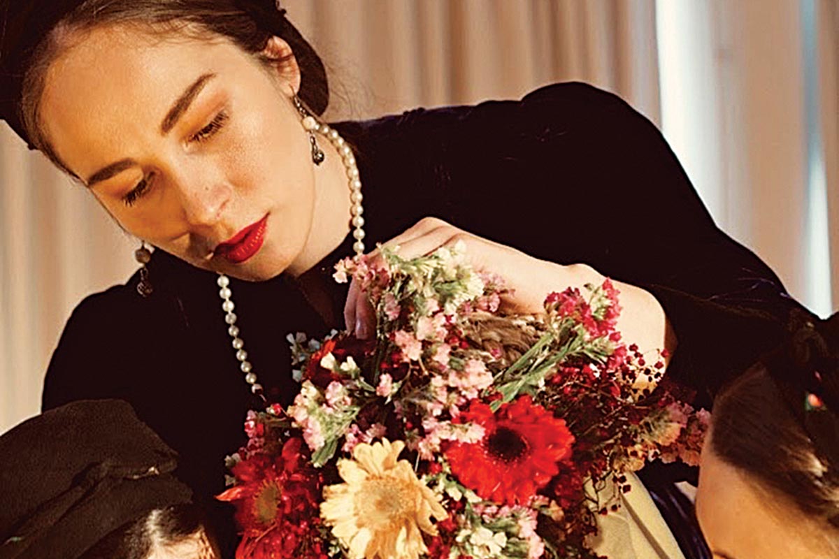 Αποτελεί δε ένα σύνθετο σημειολογικό πορτρέτο, καθοριστικό για την υπόστασή της, στα μέλη της τοπικής κοινότητας. Μέσα από το τελετουργικό ντύσιμο της νύφης, η παράσταση εξετάζει τον ρόλο του γυναικείου φύλου και τη σχέση του με την κοινωνία. Η έρευνα και η σύλληψη της ιδέας για την παράσταση ανήκει στις Μαντώ Κατσούγκρη και Πολυξένη Κωνσταντίνου, οι οποίες ερμηνεύουν κιόλας, μαζί με τις Μελίνα Κόφφα, Μυρτώ Κόφφα, Πολυξένη Κωνσταντίνου. Τη μουσική υπογράφει ο Hydrama (Αλέξης Εφραιμίδης), ενώ οι φορεσιές είναι από το βεστιάριο του σωματείου ελληνικών παραδοσιακών χορών «Λυγκηστές». Μουσικοί επί σκηνής, οι Θοδωρής Τασούλας, Πέτρος Παπαγεωργίου.