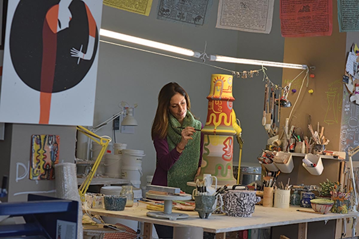 Η Λεώνη Γιαγδζόγλου έχει αφιερώσει τα τελευταία δεκαπέντε χρόνια στην κεραμική, συνδυάζοντας design και ζωγραφική σε μια προσωπική γλώσσα που ισορροπεί ανάμεσα στη φόρμα και τη χειρονομία. Η μετάβασή της από τον χώρο του branding -ήταν συνιδρύτρια της εταιρίας MILK Design στην Κολονία- προς την εικαστική δημιουργία υπήρξε φυσική συνέχεια μιας εσωτερικής αναζήτησης: από το τέλειο σχήμα προς το ανθρώπινο αποτύπωμα.