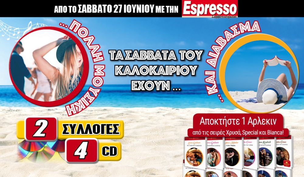 Από τις 27.06 με την Espresso και κάθε Σάββατο αποκτήστε 2 συλλογές (4CD) με μεγάλες ελληνικές & ξένες επιτυχίες !