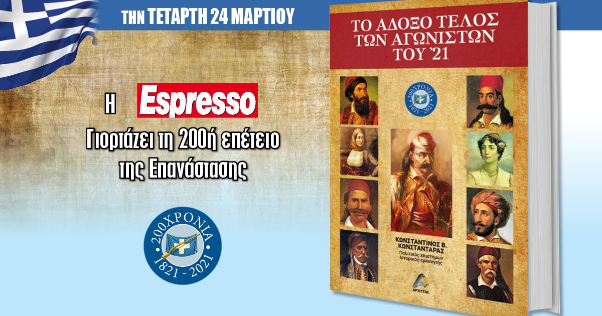 Την Τετάρτη 24 Μαρτίου, η Espresso γιορτάζει την 200ή επέτειο της Επανάστασης με ένα μοναδικό βιβλίο: Το άδοξο τέλος των αγωνιστών του ’21 • Μην το χάσετε!