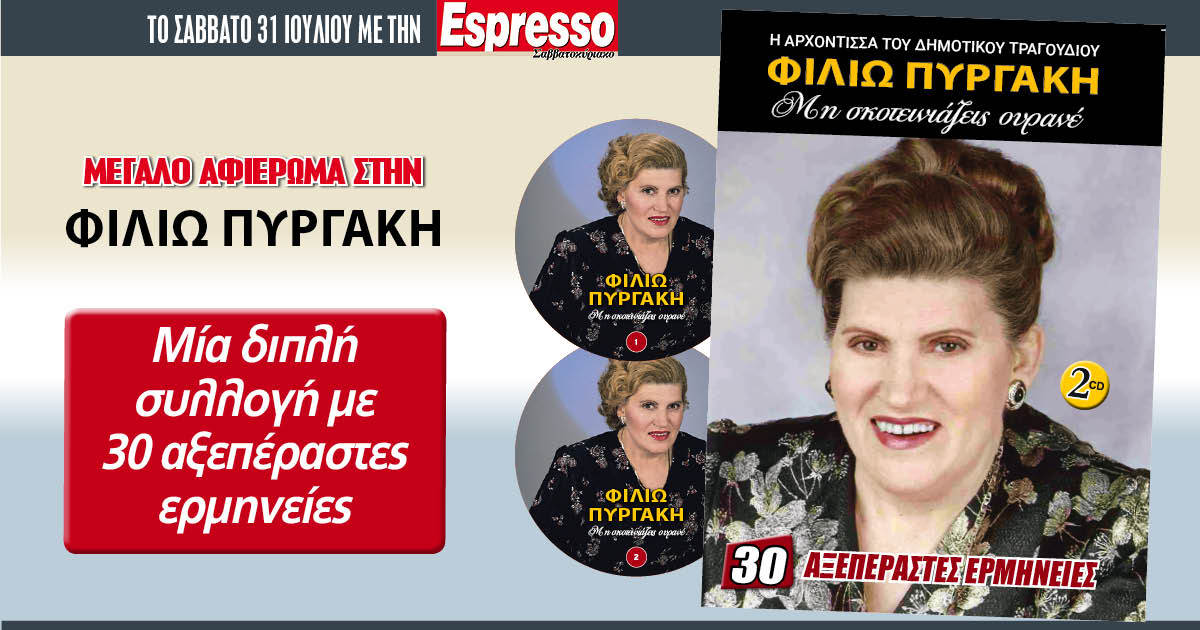 Το Σάββατο 31.07 με την Espresso, ένα μεγάλο αφιέρωμα στην ΦΙΛΙΩ ΠΥΡΓΑΚΗ!