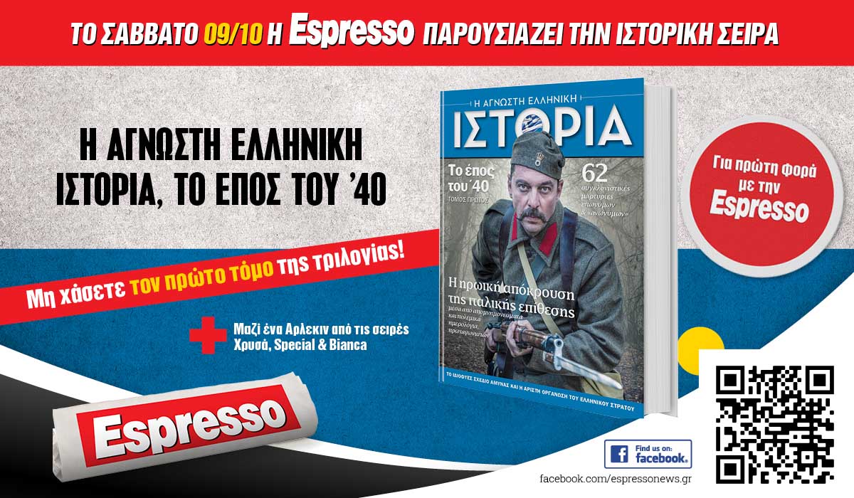 Το Σάββατο 09.10 η Espresso παρουσιάζει την ιστορική σειρά: Η Άγνωστη Ελληνική Ιστορία, το Έπος του ’40 • Συγκλονιστικές μαρτυρίες, πολεμικά ημερολόγια και απομνημονεύματα πρωταγωνιστών της μεγάλης νίκης!
